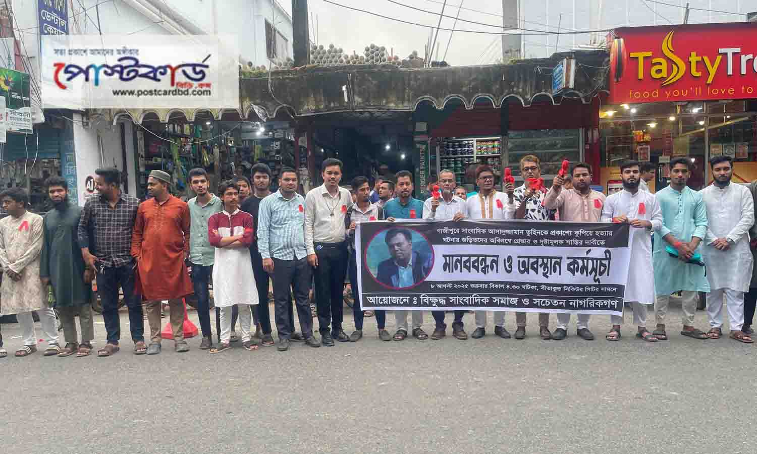 এসময় মানববন্ধনে বক্তারা বলেন,গাজীপুরে সাংবাদিক আসাদুজ্জামানকে কুপিয়ে হত্যা করা হয়েছে। অন্য ঘটনায় সাংবাদিক আনোয়ার হোসেনকে বেধড়ক মারা হয়েছে। পেশাগত দায়িত্ব পালন করতে গিয়ে বছরের পর বছর ধরে নির্যাতিত হচ্ছেন সাংবাদিকরা। দেশে সাংবাদিক নির্যাতনের পরিসংখ্যান দেখলে আঁতকে উঠতে হয়। কিন্তু সাংবাদিক নির্যাতনের বিচার হয় না। ভয়-ভীতি, হুমকি-ধামকি, মামলা-মোকদ্দমা, মারাত্মক শারীরিক নির্যাতনে জখম থেকে শুরু করে গুম কিংবা খুন নির্যাতনের শিকার হচ্ছেন সাংবাদিকরা। চট্টগ্রাম সহ সারা দেশে এ বিভাগীয় শহর কিংবা মফস্বল সর্বত্রই চলছে এই নির্যাতন। স্থানীয় প্রভাবশালী, রাজনৈতিক নেতাকর্মী, জনপ্রতিনিধি, প্রশাসন থেকে শুরু করে আইনশৃঙ্খলা রক্ষাকারী বাহিনীর কর্মকর্তা বা সদস্য সবার বিরুদ্ধেই বিভিন্ন সময়ে সাংবাদিক নির্যাতনের অভিযোগ উঠেছে। লোকচক্ষুর অন্তরালে তুলে নিয়ে নির্যাতন থেকে শুরু করে প্রকাশ্য দিবালোকে জনসমক্ষে মারধরের শিকার হচ্ছেন, নির্যাতিত হচ্ছেন সাংবাদিকরা। কিন্তু দেশে একের পর এক সাংবাদিক হত্যা আর নির্যাতন-নিপীড়নের বিচার নেই। হত্যা ও নির্যাতনের অগুনতি মামলা বছরের পর বছর ঝুলে আছে, বিচারের কোনো অগ্রগতি নেই। বিচার না করায় দেশে এখন সাংবাদিক নির্যাতন নিত্যকার বিষয় হয়ে উঠেছে। যে কোনো স্থানীয় বা জাতীয় দুর্যোগে সাংবাদিকরা ঝুঁকি নিয়ে কাজ করেন। এমন ঝুঁকিপূর্ণ পেশায় কাজ করা সত্ত্বেও সাংবাদিকদের জন্য কোনো ধরনের ঝুঁকিভাতা পর্যন্ত নেই। কিন্তু পেশাগত দায়িত্বপালনে প্রতিশ্রুতিবদ্ধ সাংবাদিকরা জীবনের ঝুঁকি নিয়ে নিরলস কাজ করে যাচ্ছেন।