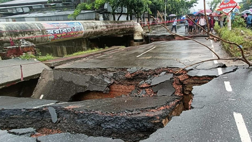 ভারী বৃষ্টিতে চট্টগ্রামে দেবে গেছে সড়ক, ভোগান্তি চরমে !